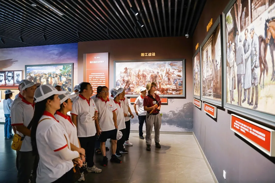 在纪念馆内,党员们聆听着讲解员关于红军强渡大渡河的细节描述,将我们带回那个战火纷飞的年代,感受革命先辈在炮火连天的岁月中体现出的钢铁意志和爱国热情,重温我党的革命历史和战斗作风,共同回顾我党的光辉历程和长征途中的丰功伟绩。